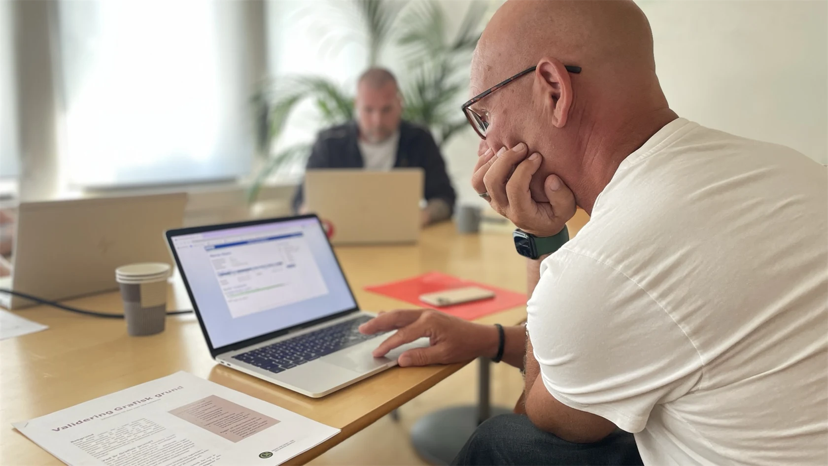 – Många företag är generösa med att ta emot oss. Men det skulle behövas ett större engagemang från företagen när det gäller hjälp med att exempelvis granska kompetensstandarder, fyller Linus Johansson i, tidigare yrkeslärare inom grafisk produktion och med sedan starten i arbetet med att ta fram valideringsprov för den grafiska branschen.