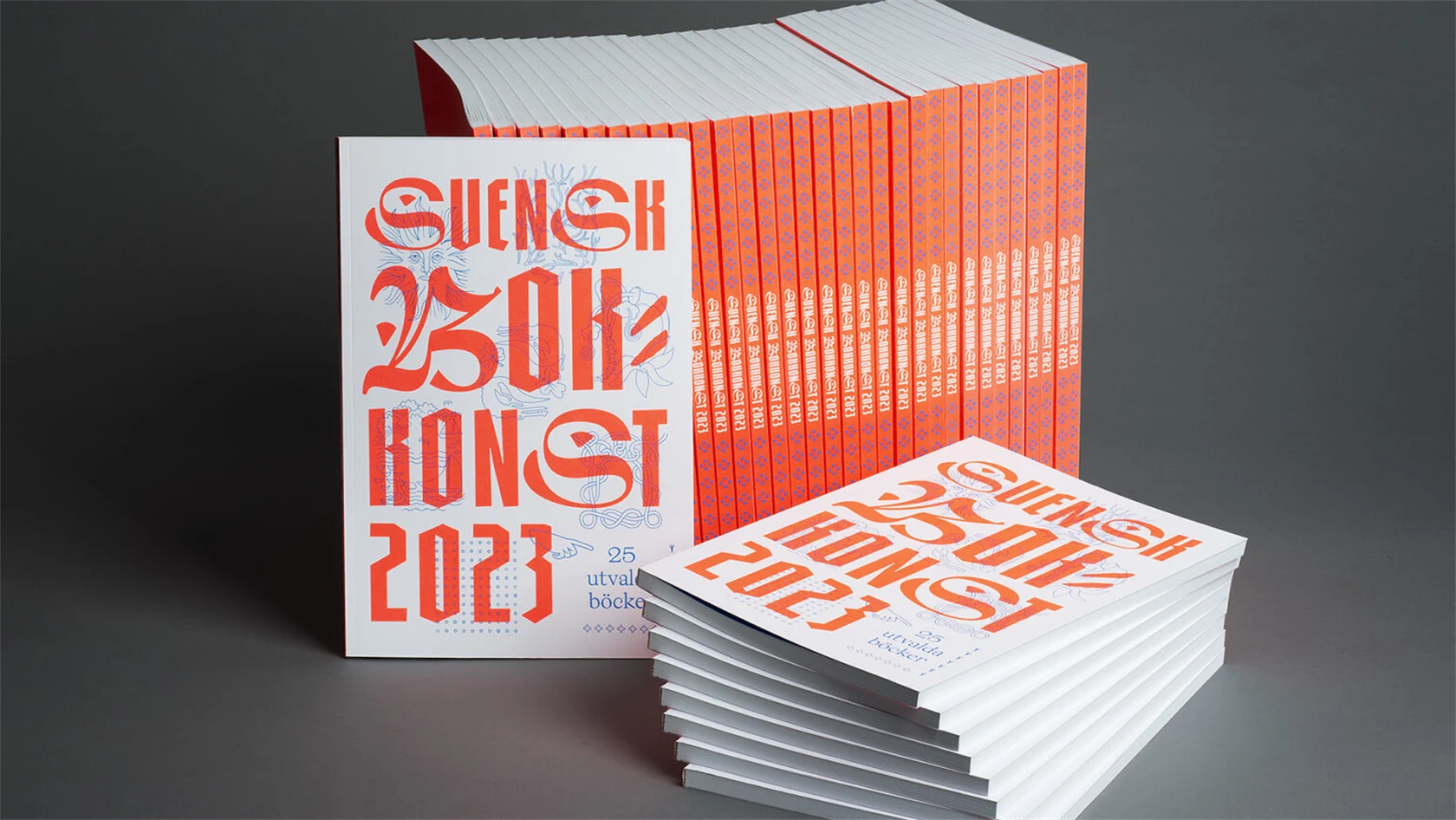 Årets katalog, producerad av Taberg Media Group, presenterar de utvalda böckerna och lyfter också att priset Svensk Bokkonst i år firar 90 år och den svenska boktryckarkonsten 540 år. Designen är inspirerad av den allra första tryckta svenska boken men leker med humor och en modernare färgskala, berättade formgivarna Sepidar Hosseini och Moa Schulman under prisutdelningen.